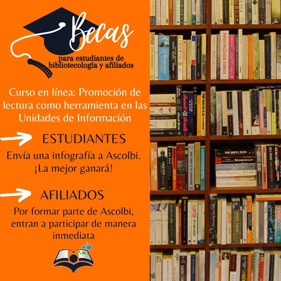 Si es estudiante activo de bibliotecología de Colombia, afiliado individual o institucional a Ascolbi y está interesada (o) en recibir formación en promoción de lectura y fortalecer su función misional de promoción, difusión y acceso a la información, le invitamos a participar en las siguientes becas: