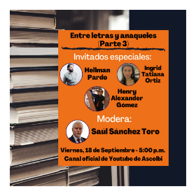 En esta tercera transmisión, nos estará acompañando Hellman Pardo, que entre sus reconocimientos se encuentra el Premio de Poesía del Festival Internacional de Poesía de Medellín y el XIX Premio Nacional de Poesía Eduardo Cote Lamus, concedido en 2017. Sus libros más recientes: Reino de Peregrinaciones (2018); la antología He escrito todo mi desamparo (2019), y la novela Lecciones de violín para sonámbulas. Asimismo, estará acompañándonos con sus textos Ingrid Tatiana Ortiz Buitrago, quien ha desempeñado diversas actividades bibliotecarias en la Red de Bibliotecas de Bogotá BIBLORED entre 2007 – 2011, con La Universidad de Bosque en 2012 y con la Universidad Minuto de Dios en la Biblioteca Rafael García Herreros durante los años 2012 - 2020. Mientras desarrollaba algunas labores participó en los Talleres Distritales De Escritura Creativa del Instituto Distrital De Las Artes – IDARTES en 2018, un espacio de formación literaria único en Bogotá para quienes aprecian el arte de escribir. Considera siempre construirse diariamente como poeta, la poesía es la manifestación literaria con la que se identifica, en ella se encuentra con sí misma para conspirar contra la vida, el destino y el amor.