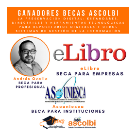 Los ganadores fueron elegidos al azar, a través de una página online en la que teníamos la lista de afiliados actualizada hasta horas antes de comenzar la transmisión. En esta, dividimos los afiliados profesionales, de los empresariales e institucionales; de los primeros, resultó ganador Andrés Ovalle, quien es Bibliotecólogo de la Universidad de La Salle. Actualmente, es Socio y Gerente de Proyectos del área de bibliotecas y repositorios de Biteca, en donde ha implementado sistemas Koha, PMB y DSpace así como orientar tecnológicamente el desarrollo de servicios para sus clientes, ha trabajado en diferentes bibliotecas y centros de documentación, en áreas de coordinación y procesos técnicos. Por otro lado, la institución ganadora de este sorteo fue Asouniesca, la Asociación de Unidades de Información de las Instituciones de Educación Superior de la Región Caribe, que nace en el año 2000 gracias al Comité Regional de Integración de las Bibliotecas Universitarias de la Costa Atlántica, CRIBUCA/SIDES, en el cual se integran las bibliotecas de las Universidades de la Costa Caribe. En este momento, cuenta con diferentes socios de Instituciones de Educación Superior e Instituciones y Centros de Documentación que contribuyen en su labor.