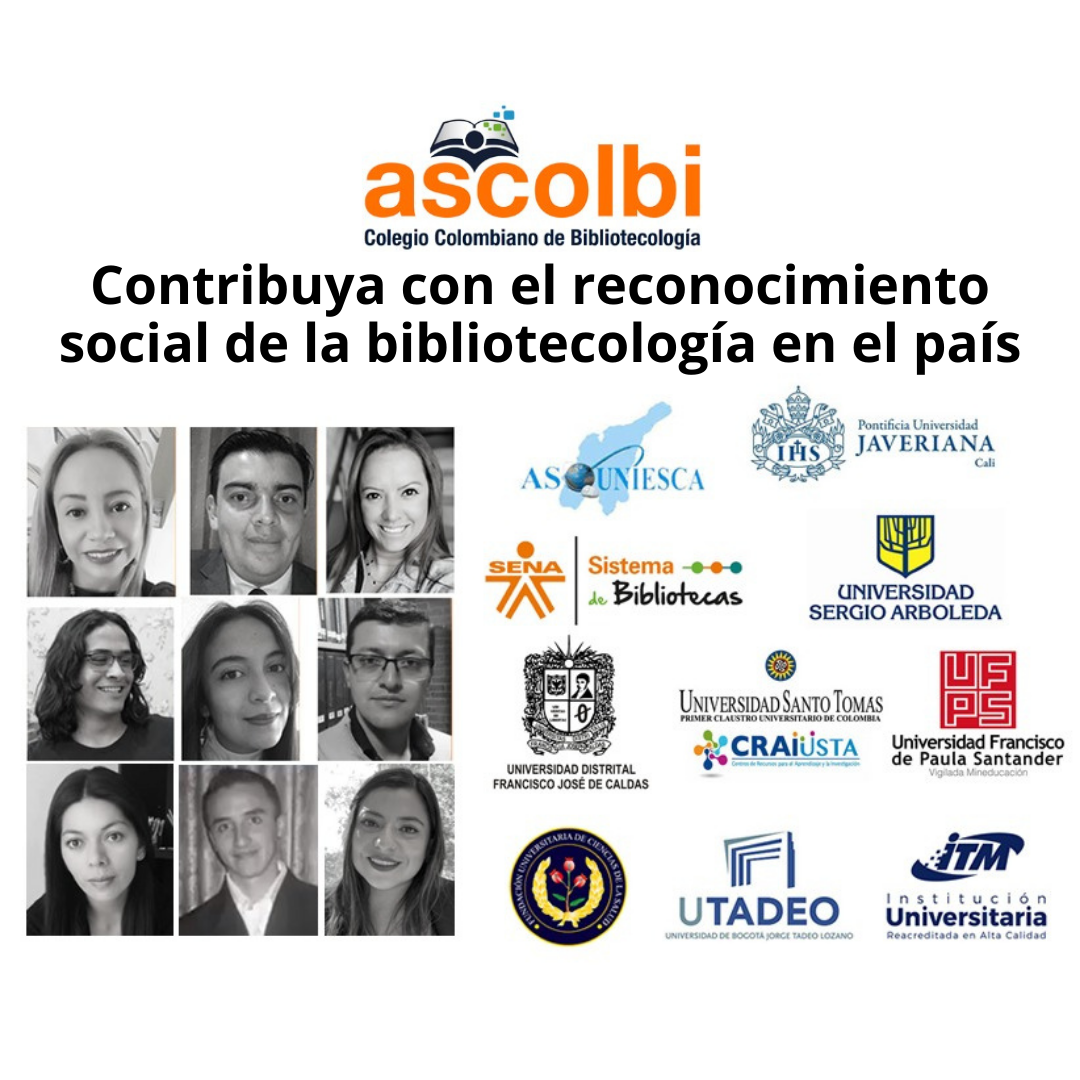 Si considera que la Ciencia de la Información y la Bibliotecología son fundamentales para contribuir con la organización, preservación y acceso a la información y el conocimiento como insumo fundamental para la transformación social del país, invitamos a nuestros asociados a actualizar su información de contacto (afiliado individual, afiliado institucional) e invitamos a los no asociados a afiliarse a Ascolbi.