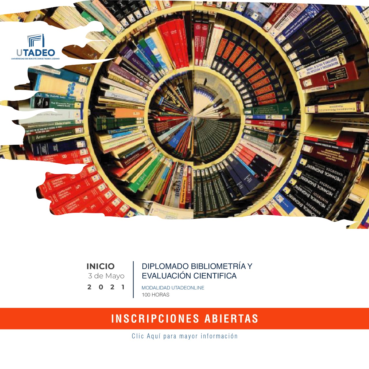 La Universidad Jorge Tadeo Lozano presenta su diplomado en Bibliometría y Evaluación Científica, el cual comenzará el 3 de Mayo de 2021 y tiene el objetivo de ofrecer aspectos integradores, herramientas y conocimientos sobre teorías, fuentes de datos y sistemas de análisis, indicadores y métodos bibliométricos, importantes para la creación y diseño de ofertas de servicios de información en universidades, editoriales y otros escenarios.