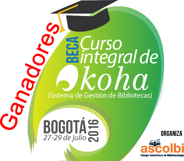 El Colegio Colombiano de Bibliotecología (Ascolbi) tiene el gusto de comunicar el resultado de las becas para asistir de forma gratuita al Curso integral de Koha (Sistema de Gestión de Bibliotecas) que se llevará a cabo en la ciudad de Bogotá el 27, 28 y 29 de julio de 2016.
