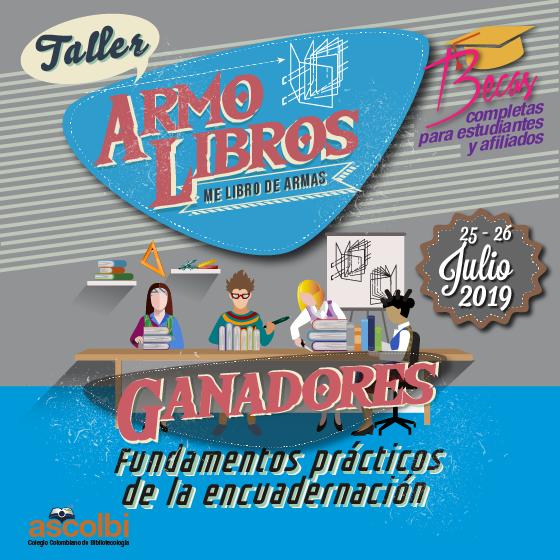Ascolbi tiene el gusto de comunicar los ganadores de las becas para asistir de forma gratuita al Taller Armo libros, me libro de armas. Fundamentos prácticos de la encuadernación, Bogotá, 2019-1, que se llevará a cabo en la ciudad de Bogotá el 25 y 26 de julio de 2019.
