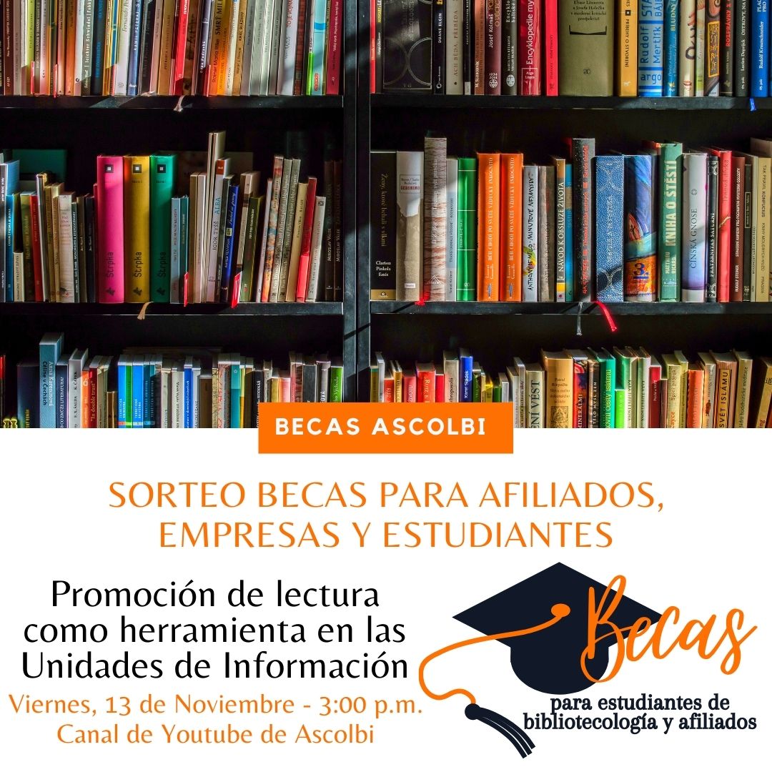 Ascolbi ofrece dos becas para estudiantes y afiliados a todos los cursos y talleres que imparte. En esta ocasión, extendemos la invitación a participar del sorteo de una beca para afiliados profesionales, otra para afiliados empresariales e institucionales, y el ganador del concurso de una beca para estudiantes, que permitirá la participación gratuita al Curso en línea de Promoción de lectura como herramienta en las Unidades de Información que se estará realizando el próximo 18 de Noviembre.
